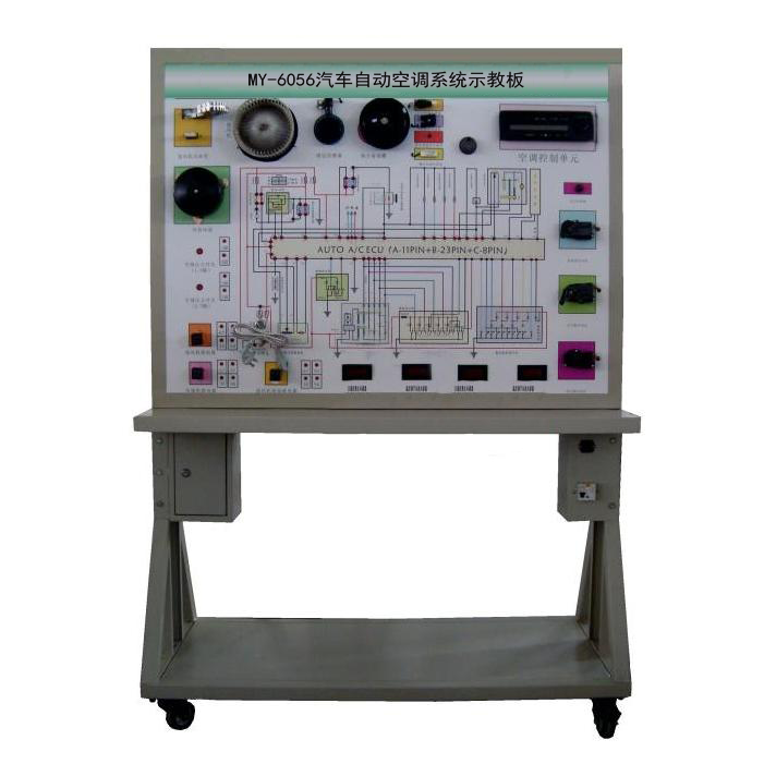 3、示教板面板采用4mm厚耐腐蝕、耐創(chuàng)擊、耐污染、防火、防潮的高級(jí)鋁塑板,表面經(jīng)特殊工藝噴涂底漆處理;UV平板噴繪面板打印有永不褪色的彩色電路圖;學(xué)員可直觀對(duì)照電路圖和實(shí)物,認(rèn)識(shí)和分析汽車空調(diào)電路系統(tǒng)的工作原理。