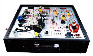 ABS控制單元總成一個(包含ABS泵和油路閥體),點火開關(guān)一個,ABS線束一套,制動主缸一個,制動液壺一個,4個輪速傳感器,一個輪速傳感器信號盤,一個剎車開關(guān),一個ABS故障指示燈,一個直流12V30W調(diào)速電機,一個12V12A開關(guān)電源,一個 OBD2診斷插座,一個制動踏板,數(shù)字顯示輪速表1個(可以切換,分別測量四個輪速),車輪制動指示燈1個(可以切換,分別檢測四個),數(shù)字顯示頻率表一個(可以切換,分別檢測四個制動分泵的制動頻率),故障設(shè)置開關(guān)16個,UV噴繪的電路原理圖面板一塊,檢測端子約40個,車速模擬開關(guān)1個,托盤式底座一個。
