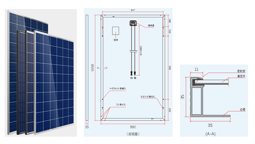 太陽能電池組為多晶硅或單晶硅,是由高效晶體硅太陽能電池片、超白布紋鋼化玻璃、EVA、透明TPT背板以及鋁合金邊框組成。