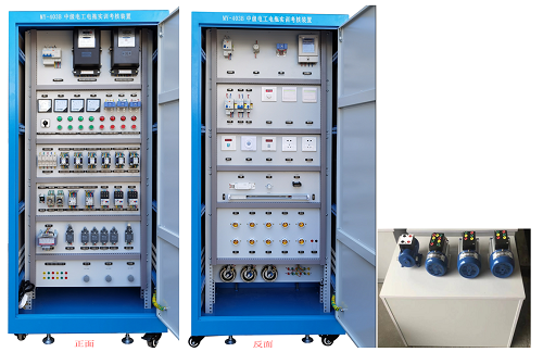 中級(jí)電工電拖實(shí)訓(xùn)考核裝置-是按照勞動(dòng)社會(huì)保障部頒發(fā)的“工人技術(shù)等級(jí)標(biāo)準(zhǔn)”和“職業(yè)技能鑒定規(guī)范”的內(nèi)容要求,根據(jù)電工培訓(xùn)考核的實(shí)際情況而設(shè)計(jì)的,以標(biāo)準(zhǔn)的電氣控制柜為主柜,利用柜體的雙面空間,布置電器及配套實(shí)驗(yàn)器材,能完成電工考核鑒定中的電力拖動(dòng)控制與照明電路的實(shí)操項(xiàng)目,該電工電拖實(shí)訓(xùn)考核柜堅(jiān)持理論聯(lián)系實(shí)際的原則,突出技能訓(xùn)練,注重針對(duì)性、實(shí)用性、科學(xué)性。該柜體設(shè)計(jì)合理、實(shí)操方便,占地面積少。為延長(zhǎng)電器的使用壽命,各電器的接點(diǎn)都與接線端子相連,再讓學(xué)生在接線端子上接線,連接電機(jī)、電器來(lái)完成各項(xiàng)控制實(shí)驗(yàn)。該套設(shè)備適用于各勞動(dòng)職業(yè)技能鑒定部門(mén),同時(shí)也適應(yīng)中職、技校電工電拖專業(yè)教學(xué)與實(shí)訓(xùn)考核的理想設(shè)備。