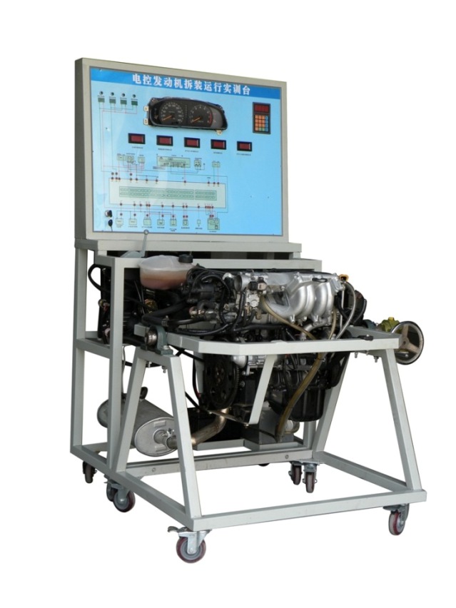 發(fā)動(dòng)機(jī)操縱運(yùn)行臺(tái):發(fā)動(dòng)機(jī)控制單元、原車(chē)線束、儀表總成、點(diǎn)火開(kāi)關(guān)、整套散熱機(jī)構(gòu)、汽油箱和汽油泵總成、蓄電池、五個(gè)數(shù)字電壓表、真空壓力表及燃油壓力表、帶有完整彩色電路原理圖面板、外接式檢測(cè)端子、智能故障設(shè)置盒總成、可移動(dòng)臺(tái)架、使用說(shuō)明書(shū)及實(shí)驗(yàn)指導(dǎo)書(shū)。