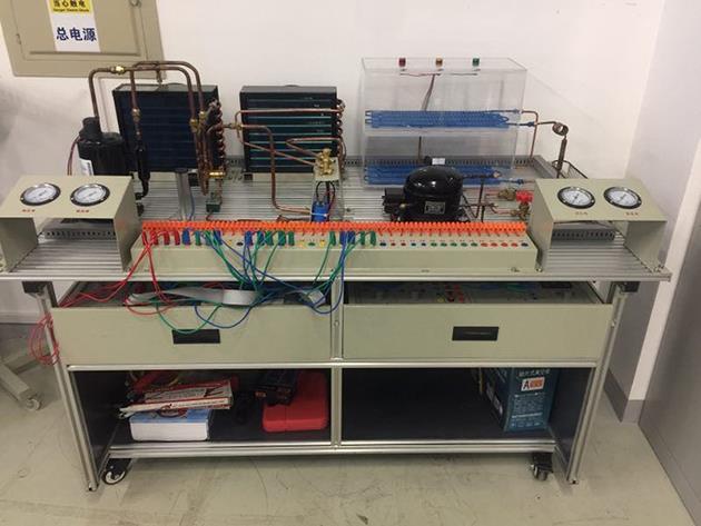 MYN-508C 現(xiàn)代制冷與空調(diào)系統(tǒng)技能實訓(xùn)裝置是一款專門為職業(yè)院校制冷類專業(yè)而研制的制冷制熱實訓(xùn)設(shè)備,電氣控制電路維修能力等是現(xiàn)代制冷制熱技能實訓(xùn)的必要工具。根據(jù)制冷制熱類行業(yè)中空調(diào)與冰箱維修技術(shù)的特點,針對空調(diào)和冰箱的電氣控制以及制冷系統(tǒng)、電氣控制系統(tǒng)、系統(tǒng)調(diào)試、故障診斷等特點進行設(shè)計。本裝置由空調(diào)系統(tǒng)模塊,冰箱系統(tǒng)模塊,電源及儀表模塊,空調(diào)電氣控制模塊,冰箱電子溫控電氣控制模塊,冰箱智能溫控電氣控制模塊等組成。通過設(shè)備進行項目訓(xùn)練,能提高學(xué)生的動手操作能力,計劃組織能力,制冷系統(tǒng)的調(diào)試安裝能力,電氣控制電路維修能力等是現(xiàn)代制冷制熱技能實訓(xùn)的必要工具。強化了學(xué)生對空調(diào)冰箱系統(tǒng)管路的安裝與維修系統(tǒng)調(diào)試等的等的綜合職業(yè)能力。