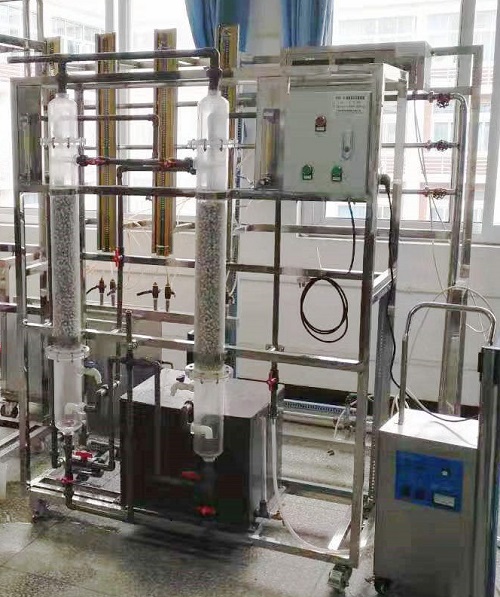 2、反應(yīng)塔:Φ100×1200㎜,有機玻璃,內(nèi)裝瓷環(huán)填料。