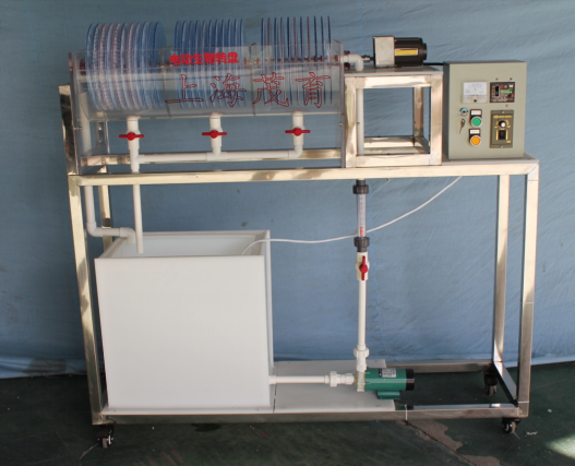 本裝置主要配置:轉(zhuǎn)盤反應(yīng)器、水泵、調(diào)速電機、流量計、配水池、閥門、管道、電路控制系統(tǒng)、框架及控制屏。