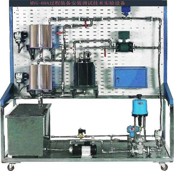 過程控制實(shí)訓(xùn)設(shè)備被控對象包含支力系統(tǒng)、水箱、儲水箱、壓力變送器、渦輪流量計、變壓變送器、Pt100和K分度熱電偶、電動調(diào)節(jié)閥、電磁閥、管路及閥門等;控制系統(tǒng)包含不銹鋼網(wǎng)孔板、故障設(shè)置箱、開關(guān)電源、單相調(diào)壓模塊、K分度熱電偶冷端補(bǔ)償器、漏電保護(hù)器、智能儀表及接線線端子排等。