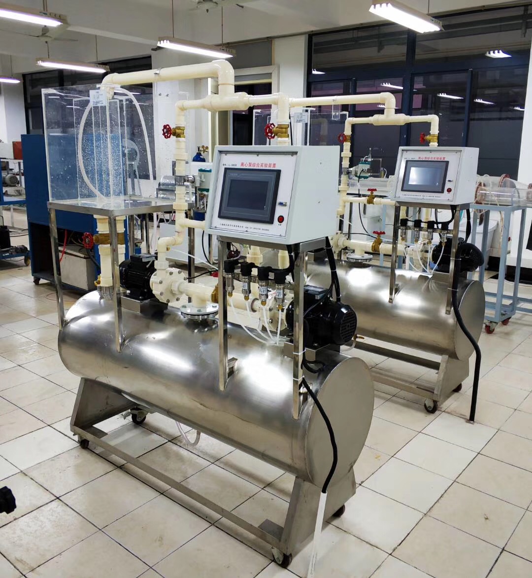 兩臺(tái)實(shí)驗(yàn)水泵;流量傳感器、壓力傳感器、溫度傳感器、回水箱、ABS串、并連管路、銅閥門(mén)、控制箱、液晶顯示屏、不銹鋼實(shí)驗(yàn)臺(tái)等。