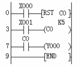 | 復(fù)位動作 | 掃行RST命令時,計數(shù)器的當(dāng)前值為零,輸出接點恢復(fù) | |