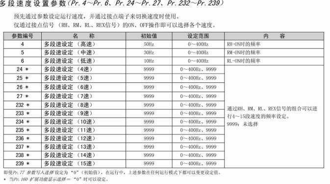 4速以上的多段速設(shè)定(Pr.24~Pr.27、Pr.232~Pr.239)