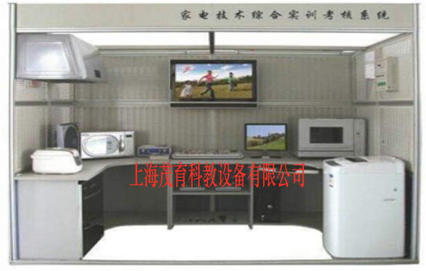 家電技術(shù)綜合實(shí)訓(xùn)系統(tǒng),家電技術(shù)綜合實(shí)訓(xùn)裝置,家電技術(shù)綜合實(shí)訓(xùn)設(shè)備通過模擬廚房的立體形式來展示各種小家電的實(shí)訓(xùn)模塊,方便學(xué)生更加直觀的去學(xué)習(xí),該房間采用鋼制網(wǎng)孔板和鋼制專用型材組接而成,安裝有自鎖式腳輪,方便移動和使用。裝置表面靜電噴塑,色彩穩(wěn)重,外表美觀大方,不易退色。裝置配有專用電源臺,裝置設(shè)計(jì)高度以人站在一級人字梯即可方便操作的高度,既安全又能使使用者感受到施工現(xiàn)場環(huán)境。橫向、叢向?qū)挾群线m,可以模擬現(xiàn)場線路的轉(zhuǎn)向布置。網(wǎng)孔板可以方便拆下,為方便隱蔽工程施工,鋼制框架仿建筑隔斷用輕鋼龍骨的加大寬度精心設(shè)計(jì),帶有穿管孔,使用扎帶固定線管,在穿出網(wǎng)孔板時可以使用壁疏引出導(dǎo)線穿入明裝底盒。裝置設(shè)有實(shí)訓(xùn)平臺,臺面采用貼面防火板后成型制作,基材為25mm厚E1級刨花板;臺身:采用18mm三聚氰胺飾面E1級刨花板,其他部位采用2mm厚優(yōu)質(zhì)PVC封邊條,機(jī)械封邊;可開設(shè)電子電風(fēng)扇、微電腦控制電飯鍋、微波爐、電子消毒柜、全自動洗衣機(jī)常用家電結(jié)構(gòu)拆卸分析、元器件識別檢測、常見典型故障分析排除等實(shí)訓(xùn)項(xiàng)目。