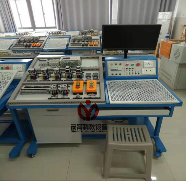 由實訓(xùn)屏(內(nèi)置電源)、實訓(xùn)桌(含鍵盤)、儲物柜三大部分組成。鋼制表面經(jīng)高溫噴塑處理,美觀大方且有效起到防銹絕緣的作用;電源箱的布局依次為電源保護裝置、電源指示裝置、電源輸出;實訓(xùn)桌左側(cè)安裝有角度可以調(diào)節(jié)的嵌入式的考核平臺1張,所有元器件均采用端子引出,學(xué)生接線只需在端子上進行接線,可以有效的保護元器件,轉(zhuǎn)接端子采用接插兩用端子排,方便與元器件和實訓(xùn)電源屏的連接,右側(cè)裝有網(wǎng)孔板一塊,角度可調(diào)嵌入式安裝;實驗桌底部裝有至少4個導(dǎo)向輪,方便設(shè)備移動;儲物柜采用標準結(jié)構(gòu)和抽屜式,用于存放工具以及實訓(xùn)資料。電腦通過可調(diào)節(jié)電腦支架安裝于電源屏的上方。