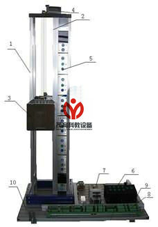模型由主體框架及導軌、轎箱及門控系統(tǒng)、配重、驅動電機、外呼按鈕及顯示屏、內(nèi)選按鈕及指示燈和控制系統(tǒng)組成,結構如圖所示。