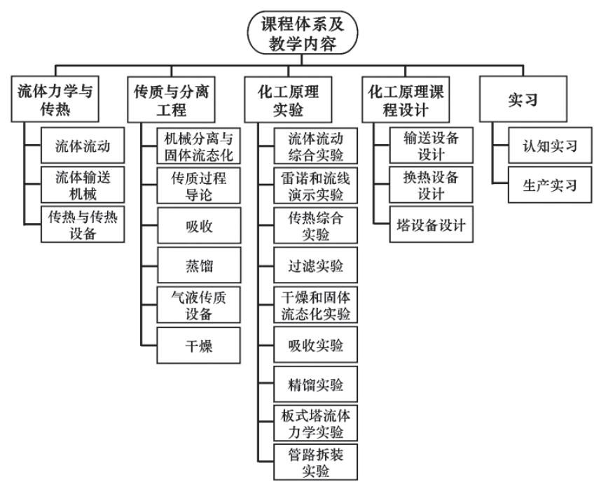圖 1 化工原理課程體系及教學(xué)內(nèi)容
