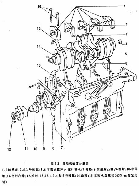 14.拆下主軸承蓋緊固螺栓,取下各道主軸承蓋及軸承,做好標記,按順序擺放,不得錯亂。