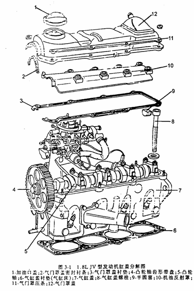 采用的是同步齒形帶驅(qū)動頂置凸輪軸,單列頂置氣門,液壓挺桿的配氣機構(gòu)。齒型帶傳動。捷達發(fā)動機凸輪軸軸向定位為軸徑兩端凸肩式。