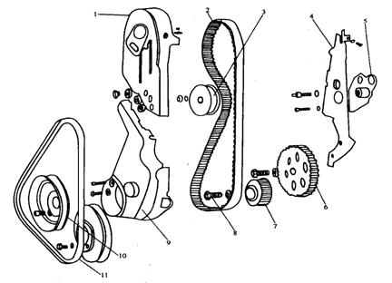 圖3-3發(fā)動機齒形帶等前端零件的拆卸