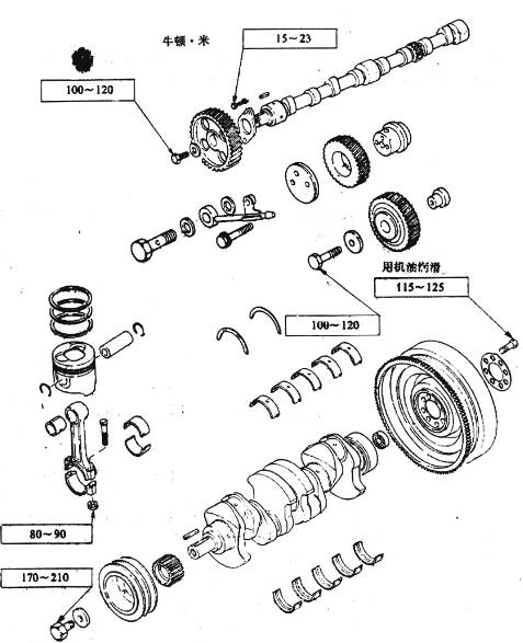 柴油機的基本工作原理是采用壓縮發(fā)火,使燃料在氣缸內(nèi)部燃燒,以高溫、高壓的燃氣工質(zhì)在氣缸中膨脹推動活塞作往復運動,再通過活塞-連桿-曲柄將往復運動變成曲軸的回轉(zhuǎn)運動,從而帶動工作機械。