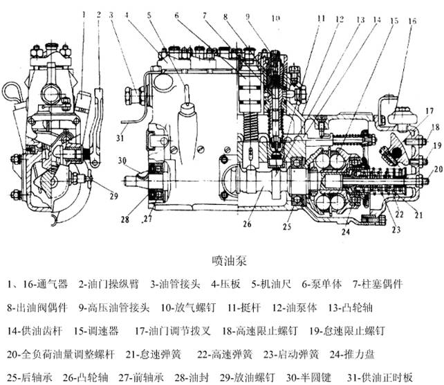 (5)燃油系統(tǒng):主要包括噴油泵、噴油器等。