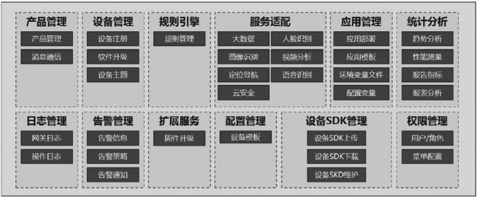 平臺除具備設備接入、設備管理、規(guī)則引擎、權(quán)限及安全管理等基礎(chǔ)功能外,還可提供大數(shù)據(jù)分析和人工智能等服務組件,為智能樓宇上層應用提供大數(shù)據(jù)分析挖掘、GIS、語音識別、視頻分析和3D等高性能海量數(shù)據(jù)處理服務。智能樓宇平臺功能結(jié)構(gòu)如圖3所示。