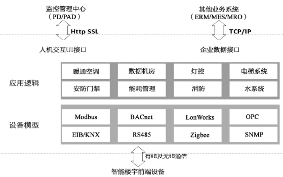 智能樓宇平臺主要實現(xiàn)以下功能和目標:①通過子系統(tǒng)之間的互聯(lián)互通實現(xiàn)系統(tǒng)和設備聯(lián)動;②通過數(shù)據(jù)的集中存儲和管理,實現(xiàn)智能樓宇的數(shù)據(jù)共享;③通過大數(shù)據(jù)的分析與處理,實現(xiàn)各種運行場景的即時有效控制;④為樓宇第三方應用服務的接入提供平臺支撐。