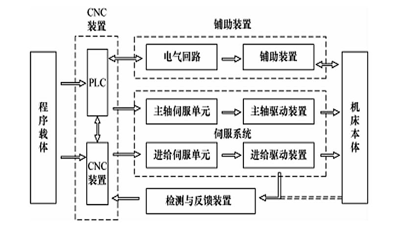 數(shù)控機(jī)床的基本組成包括加工程序載體、數(shù)控裝置、伺服驅(qū)動裝置、機(jī)床主體和其他輔助裝置。各組成部分的基本工作原理如下: