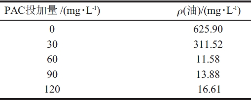 表1 PAC 投加量對(duì)處理后污水含油濃度的影響