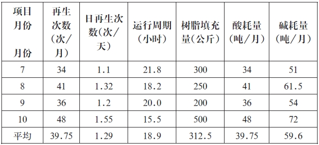 我們調(diào)整操作后對混合床再生記錄分別作了統(tǒng)計和對比,對比表如下: