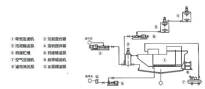 2.帶污泥脫水機(jī):污泥脫水器是由上下兩張拉過(guò)濾器腰帶和經(jīng)過(guò)一系列定期安排輥壓力管形狀的美國(guó)的壓力和剪切力形成的污泥層過(guò)濾帶本身的張力,和毛管水的污泥層擠壓出實(shí)現(xiàn)污泥脫水。