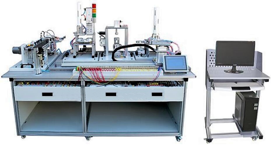 實訓裝置由由鋁合金導軌式實訓臺、典型的機電一體化設備的機械部件、PLC模塊、變頻器模塊、按鈕模塊、電源模塊、模擬生產設備實訓模塊、接線端子排和各種傳感器、計算機等組成。整體結構采用開放式和拆裝式,實訓裝置用于機械部件組裝,可根據(jù)現(xiàn)有的機械部件組裝生產設備,也可添加機械部件組裝其他生產設備,使整個裝置能夠靈活的按教學或競賽要求組裝具有生產功能的機電一體化設備。模塊采用標準結構和抽屜式模塊放置架,互換性強;按具有生產性功能和整合學習功能的原則確定模塊內容,使教學或競賽時可方便的選擇需要的模塊。設備需完全符合電工電子全國職業(yè)技能大賽所要求,同時還要求具有可拓展功能,可以組成更加大型的生產模擬系統(tǒng),以配合各個用戶學校不同層次,不同專業(yè)的教學及培訓要求。