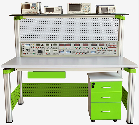 實(shí)驗(yàn)桌一桌兩座,實(shí)驗(yàn)桌桌面配有磁吸式實(shí)訓(xùn)基座,與實(shí)訓(xùn)模塊配套完成實(shí)訓(xùn)。實(shí)驗(yàn)桌后面二支截面尺寸70×70mm桌腳向上延伸,與一次成型鋁壓鑄框架連接構(gòu)件構(gòu)成(非焊接工藝)牢固的支架,與實(shí)訓(xùn)屏、儀器架、電源控制箱組成一個(gè)完整的實(shí)訓(xùn)屏。