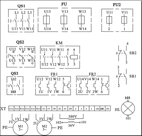 | M1、M2 | 三相鼠籠異步電動(dòng)機(jī) |