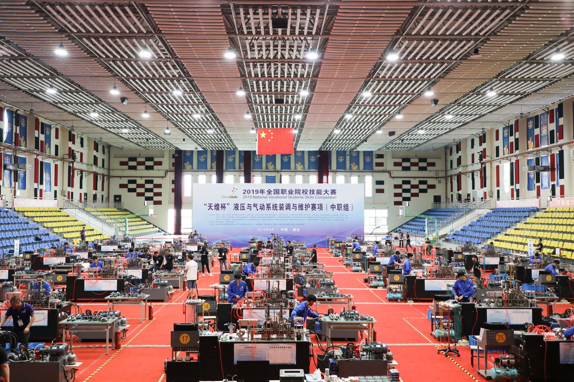 6月11日-14日,2019年全國職業(yè)院校技能大賽液壓與氣動(dòng)系統(tǒng)裝調(diào)與維護(hù)賽項(xiàng)在湖北工業(yè)職業(yè)技術(shù)學(xué)院(湖北十堰)順利舉行。為保障大賽公平、公正、公開進(jìn)行,6月11日,大賽舉行了賽項(xiàng)裁判培訓(xùn)會(huì)。會(huì)議結(jié)合此次比賽評(píng)分標(biāo)準(zhǔn)對(duì)具體執(zhí)裁環(huán)節(jié)中的注意事項(xiàng)進(jìn)行了說明,對(duì)裁判執(zhí)裁素養(yǎng)提出了相關(guān)要求。此次大賽賽項(xiàng)競(jìng)賽時(shí)間為4小時(shí),6月12日、13日,賽項(xiàng)進(jìn)行了兩天4個(gè)場(chǎng)次的激烈比拼。賽項(xiàng)通過工業(yè)雙泵液壓站的安裝、調(diào)試和參數(shù)測(cè)量,到典型液壓與氣動(dòng)系統(tǒng)回路的設(shè)計(jì)、安裝、調(diào)試和故障分析,以及比率閥PID控制技術(shù)應(yīng)用,最后完成綜合自動(dòng)控制系統(tǒng)的調(diào)試、運(yùn)行、參數(shù)校對(duì),促使參賽選手掌握液壓與氣動(dòng)最新技術(shù)的應(yīng)用能力。