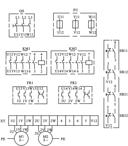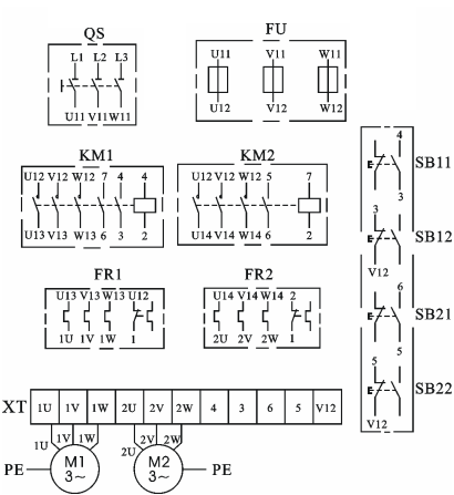 | M1、M2 | 三相鼠籠式異步電動機 |