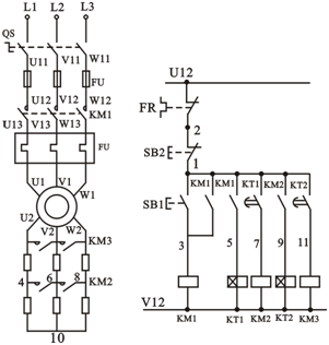 | KT1、KT2 | 通電延時(shí)時(shí)間繼電器 | ST3PA-B | 輸入交流AC380V | 2 |