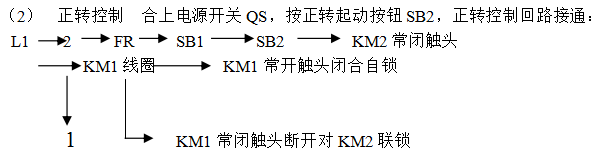 仔細(xì)檢查確認(rèn)接線無誤后,接通交流電源,按下SB2,電機應(yīng)正轉(zhuǎn)(電機右側(cè)的軸伸端為順時針轉(zhuǎn),若不符合轉(zhuǎn)向要求,可停機,換接電機定子繞組任意兩個接線即可)。按下SB3,電機仍應(yīng)正轉(zhuǎn)。如要電機反轉(zhuǎn),應(yīng)先按SB1,使電機停轉(zhuǎn),然后再按SB3,則電機反轉(zhuǎn)。若不能正常工作,則應(yīng)分析并排除故障,使線路能正常工作。