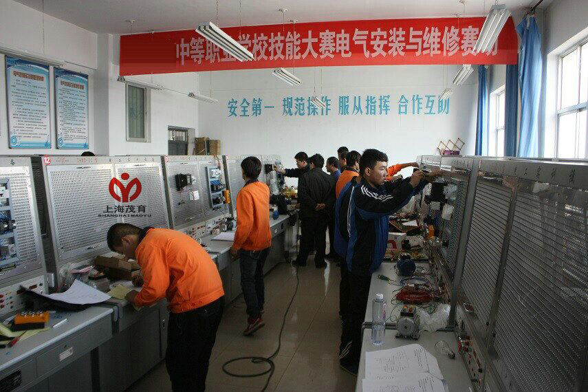 維修電工實(shí)訓(xùn)內(nèi)容貼近實(shí)際:學(xué)生在實(shí)訓(xùn)過程中,經(jīng)常會(huì)出現(xiàn)漏電保護(hù)開關(guān)跳闡,熔斷器短路,接頭冒火花,輕微觸電等現(xiàn)象,帶領(lǐng)學(xué)生對(duì)發(fā)生的一個(gè)個(gè)問題進(jìn)行探究分析,找出故障原因和維修要點(diǎn);蛘呓M織學(xué)生修復(fù)實(shí)訓(xùn)室內(nèi)損壞的設(shè)備與電器,把訓(xùn)練內(nèi)容與實(shí)際應(yīng)用結(jié)合起來。