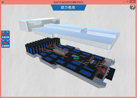 模擬拆裝教學(xué)功能:模型按照原廠維修手冊標準的拆裝順序進行程序化設(shè)計,學(xué)生在分解和裝配動力電池組時必須按照科學(xué)的順序進行操作,有助于規(guī)范學(xué)生的實操標準。