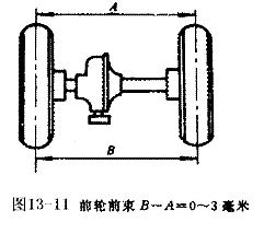 所謂前束是指兩前輪軸前輪距A小于前輪軸后輪距B的差值。其標(biāo)準(zhǔn)前束值為B-A=0-3毫米,如圖所示。