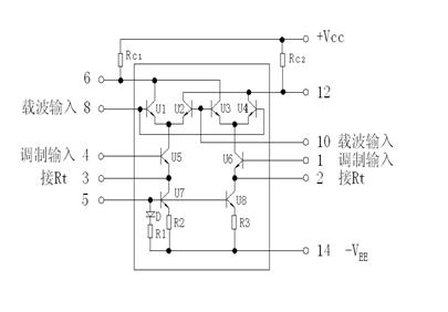 圖8-1 MC1496內(nèi)部電路及外部連接