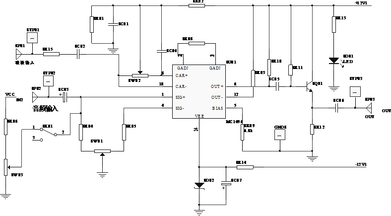 (1)載波輸入端輸入失調(diào)電壓調(diào)節(jié)