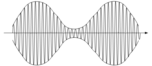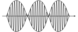 示波器CH1接調(diào)制信號(可用帶“鉤”的探頭接到8TP02上),示波器CH2接調(diào)幅輸出端(8TP03),即可觀察到調(diào)制信號及其對應的DSB信號波形。其波形如圖8-3所示,如果觀察到的DSB波形不對稱,應微調(diào)8W01電位器。