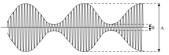 。將被測的調(diào)幅信號加到示波器CH1或CH2,并使其同步。調(diào)節(jié)時間旋鈕使熒光屏顯示幾個周期的調(diào)幅波波形,如圖8-6所示。根據(jù)M