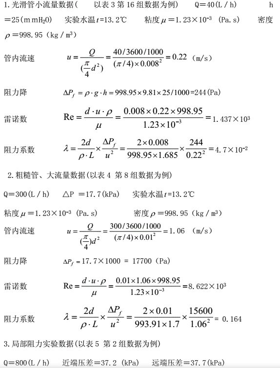 第一套:光滑管:管徑d-0.008(m) 管長L-1.70(m) 粗糙管:管徑d-0.010(m) 管長L-1.70(m) 真空表與壓強(qiáng)表測壓口之間的垂直距離h0=0.23m |