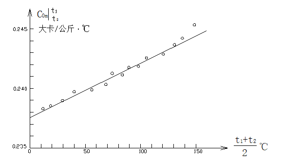 為縱坐標(biāo)(如圖三),則可根據(jù)不同的溫度范圍內(nèi)的平均比熱確定截距a和斜率b,從而得出比熱隨溫度變化的計算式。