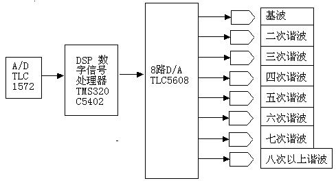 3.信號分解:對已知的輸入信號,經(jīng)定性分析其頻率分量組成后,可用DSP同時實現(xiàn)對應各頻率分量的帶通濾波器,從而能將各頻率分量濾出,即分解了復雜信號。本系統(tǒng)可同時實現(xiàn)8個數(shù)字濾波器(系統(tǒng)帶一個有8路D/A的芯片TLC5608)。