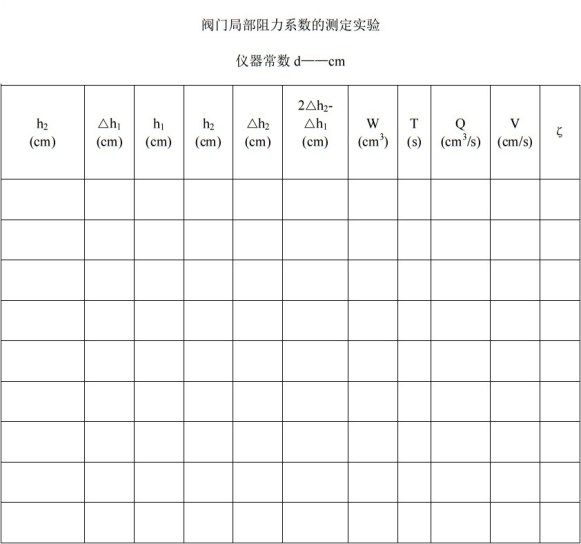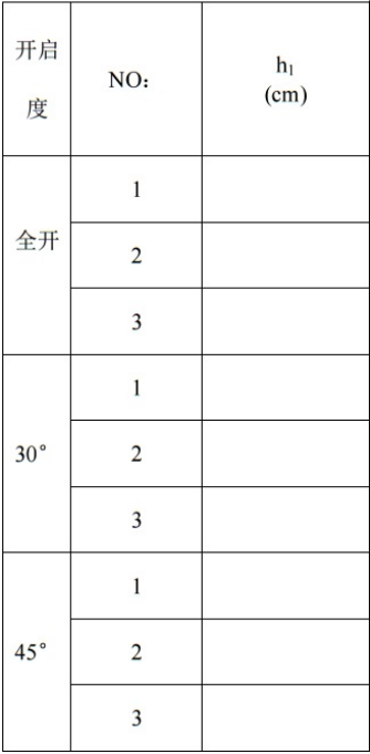 3.測定閥門不同開啟度時(全開、約 30°、約 45°三種)的阻力系數(shù)。