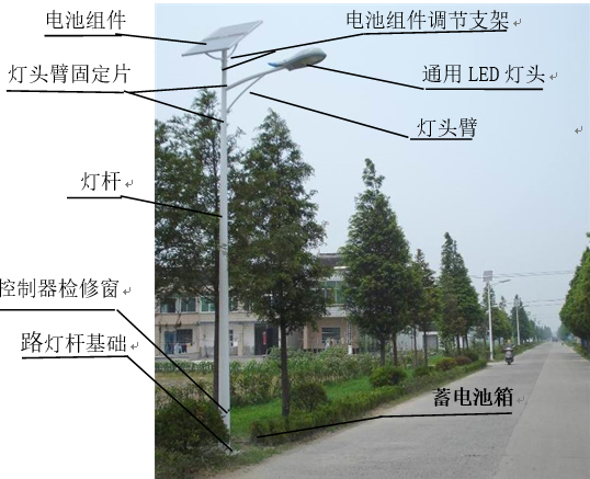 太陽能路燈是以太陽能作為電能供給,蓄電池儲存電能提供夜間道路照明用電的產(chǎn)品。照明光源采用高光效的LED設(shè)計,具有亮度高、安裝簡便、工作穩(wěn)定可靠、無需敷設(shè)電纜不消耗常規(guī)能源、使用壽命長等特點,屬于當今國家大力提倡和開發(fā)利用的綠色、節(jié)能、環(huán)保的新型能源道路照明產(chǎn)品。