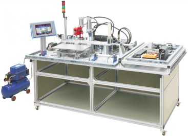 本裝置的實(shí)訓(xùn)工作臺(tái)為鋁合金型材組合而成,臺(tái)面上安裝有上料、傳送、沖壓加工、夾緊、 鉆孔加工、分揀、入料槽等,并配有液壓系統(tǒng)、氣壓系統(tǒng)、變頻器及繼電器控制、PLC等