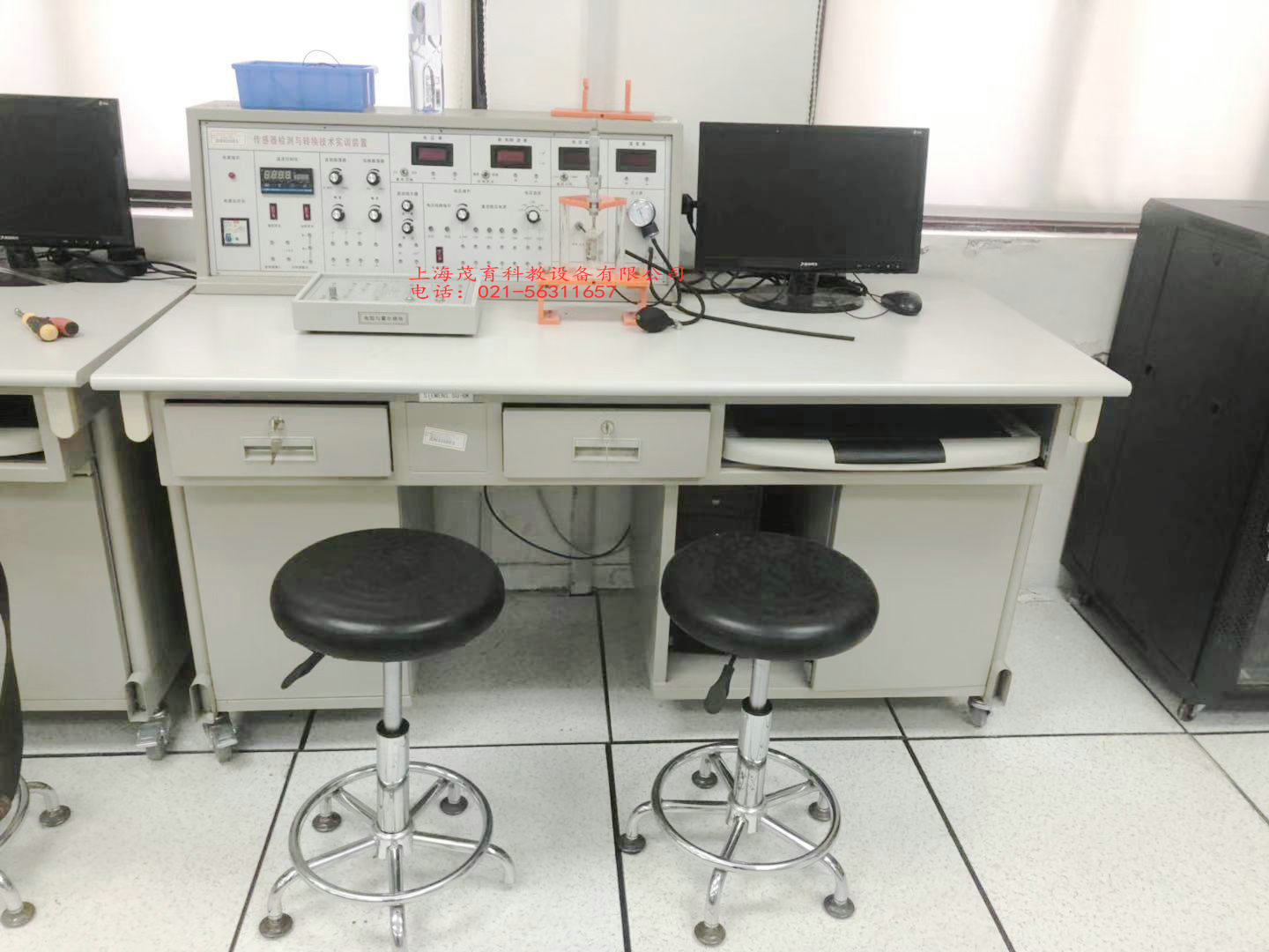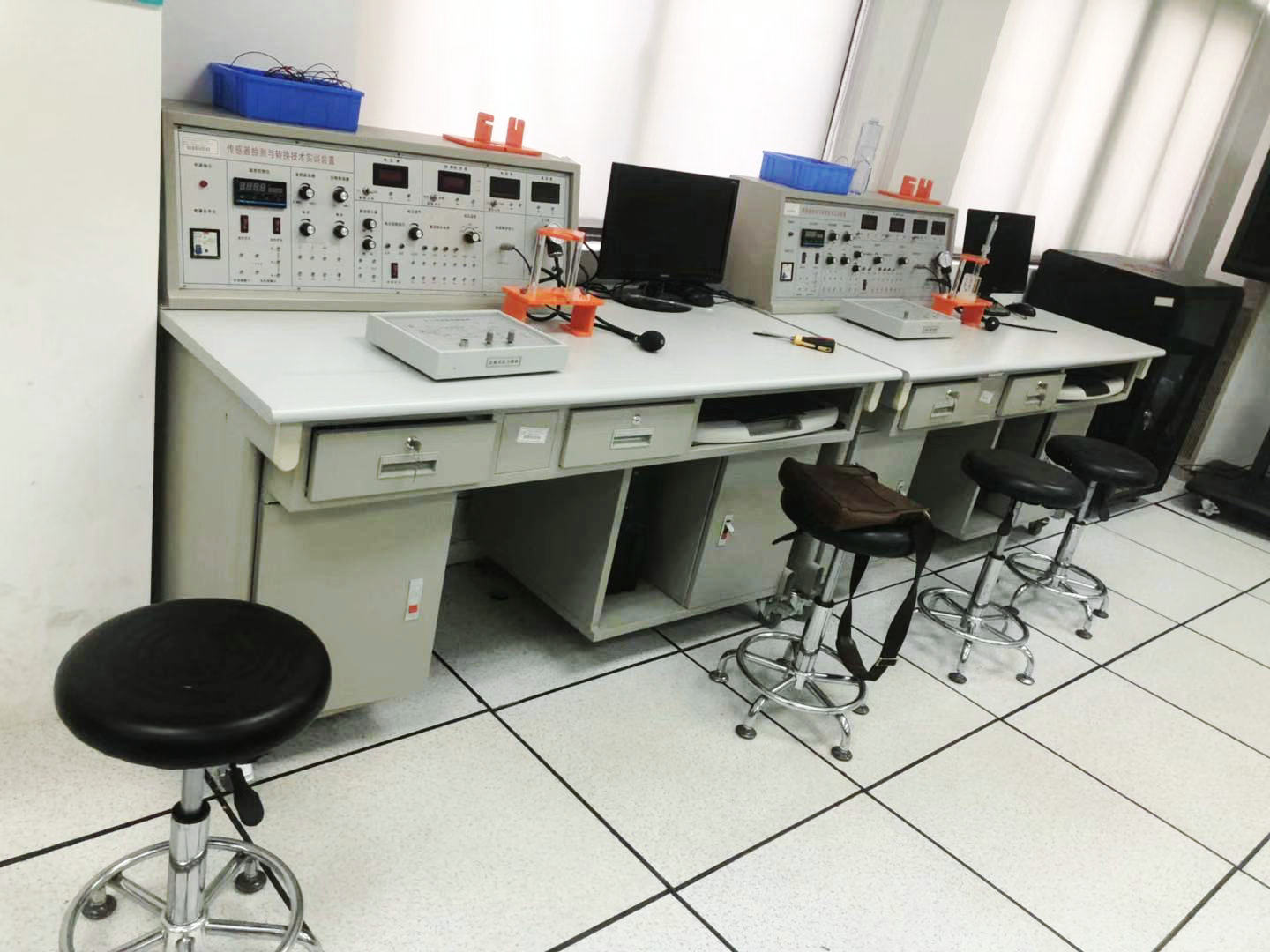 該設(shè)備由主控臺(tái)、傳感器、實(shí)驗(yàn)?zāi)K、位移臺(tái)架、數(shù)據(jù)采集卡及處理軟件、實(shí)驗(yàn)桌六部分組成,實(shí)驗(yàn)桌柜存放實(shí)驗(yàn)?zāi)K,抽屜存放各種傳感器。