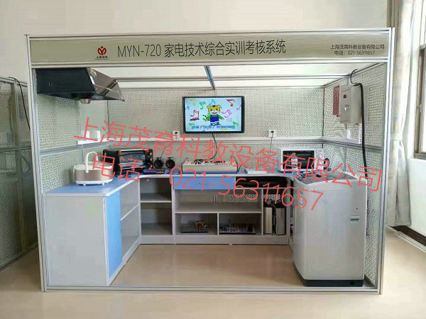 本實訓系統(tǒng)通過模擬廚房的立體形式來展示各種小家電的實訓模塊,方便學生更加直觀的去學習,該房間采用鋼制網(wǎng)孔板和鋼制專用型材組接而成,安裝有自鎖式腳輪,方便移動和使用。裝置表面靜電噴塑,色彩穩(wěn)重,外表美觀大方,不易退色。裝置配有專用電源臺,裝置設計高度以人站在一級人字梯即可方便操作的高度,既安全又能使使用者感受到施工現(xiàn)場環(huán)境。橫向、叢向?qū)挾群线m,可以模擬現(xiàn)場線路的轉(zhuǎn)向布置。網(wǎng)孔板可以方便拆下,為方便隱蔽工程施工,鋼制框架仿建筑隔斷用輕鋼龍骨的加大寬度精心設計,帶有穿管孔,使用扎帶固定線管,在穿出網(wǎng)孔板時可以使用壁疏引出導線穿入明裝底盒。裝置設有實訓平臺,臺面采用貼面防火板后成型制作,基材為25mm厚E1級刨花板;臺身:采用18mm三聚氰胺飾面E1級刨花板,其他部位采用2mm厚優(yōu)質(zhì)PVC封邊條,機械封邊;可開設電子電風扇、微電腦控制電飯鍋、微波爐、電子消毒柜、全自動洗衣機常用家電結(jié)構(gòu)拆卸分析、元器件識別檢測、常見典型故障分析排除等實訓項目。