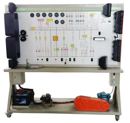 2、設(shè)備面板采用耐創(chuàng)擊、耐污染、防火、防潮的高級鋁塑板,表面經(jīng)特殊工藝噴涂底漆處理;面板打印有永不褪色的彩色電路圖;學(xué)員可直觀對照電路圖和實物,認識和分析汽車整車電器各系統(tǒng)的工作原理。
